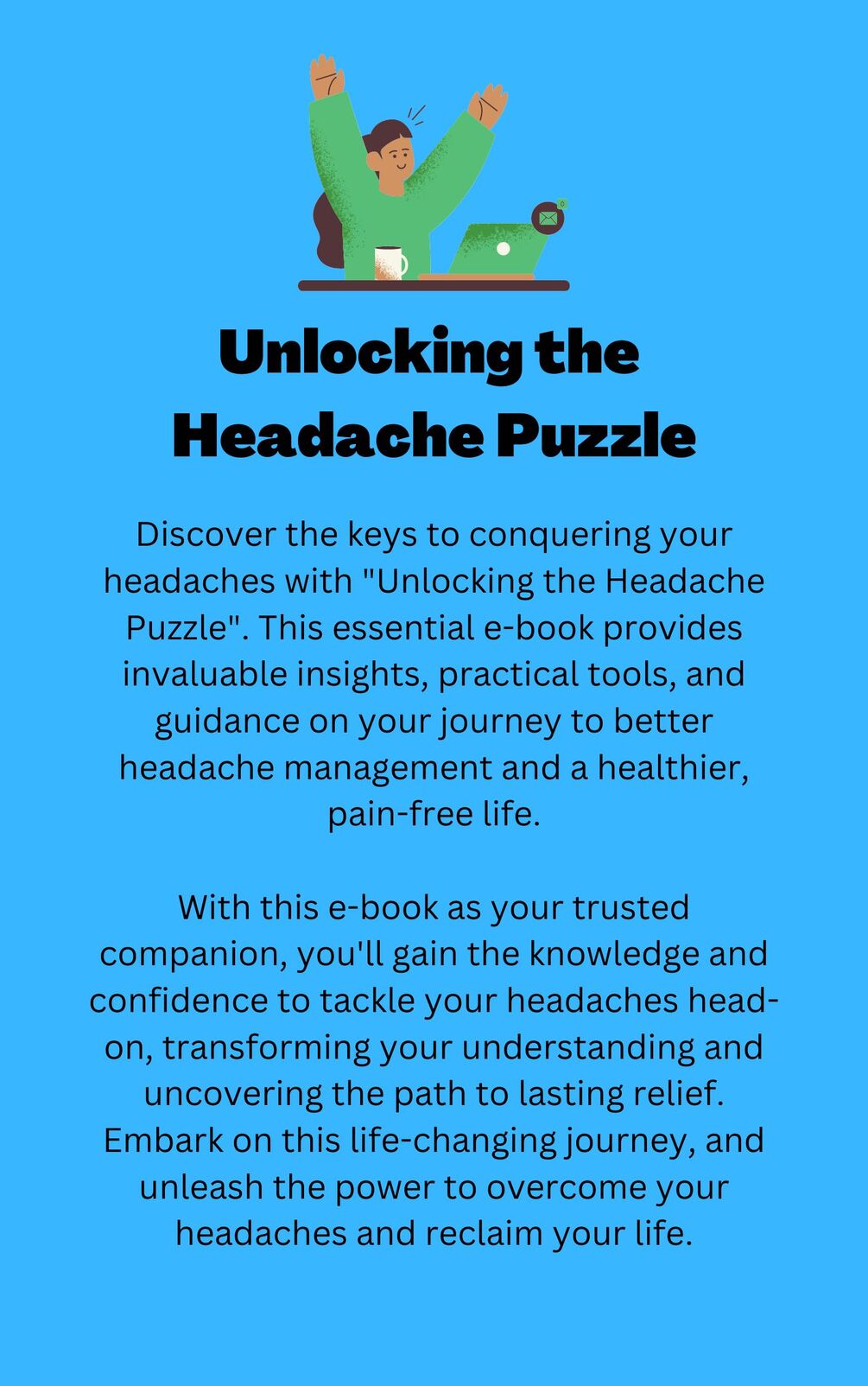 Discover the transformative power of our comprehensive e-book, "Unlocking the Headache Puzzle: Identify and Manage Different Types of Headaches". This indispensable resource is meticulously designed to help you conquer your headaches and reclaim control over your life.